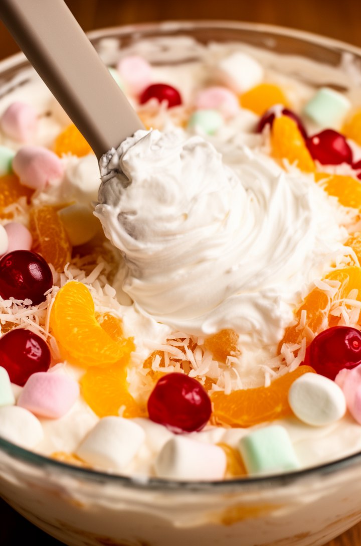 This classic ambrosia salad is the fluffy, fruity dessert salad that belongs at every potluck, holiday dinner, and summer cookout. Made with real whipped cream instead of store-bought topping, it's lighter, fresher, and miles better than anything from a tub.
