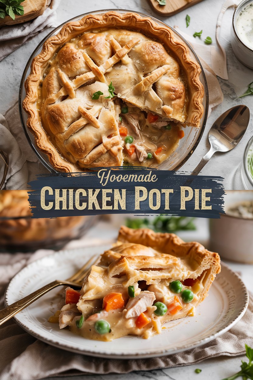 I started making chicken pot pie from scratch a few years ago when I realized the frozen ones from the store were basically just gravy with two sad pieces of chicken floating around. My version is absolutely packed with tender chicken, carrots, peas, corn, and green beans, all swimming in a thick, creamy homemade sauce and baked inside a buttery double crust until it's golden and gorgeous. It takes a little effort, but nothing about it is hard — and the payoff is massive.