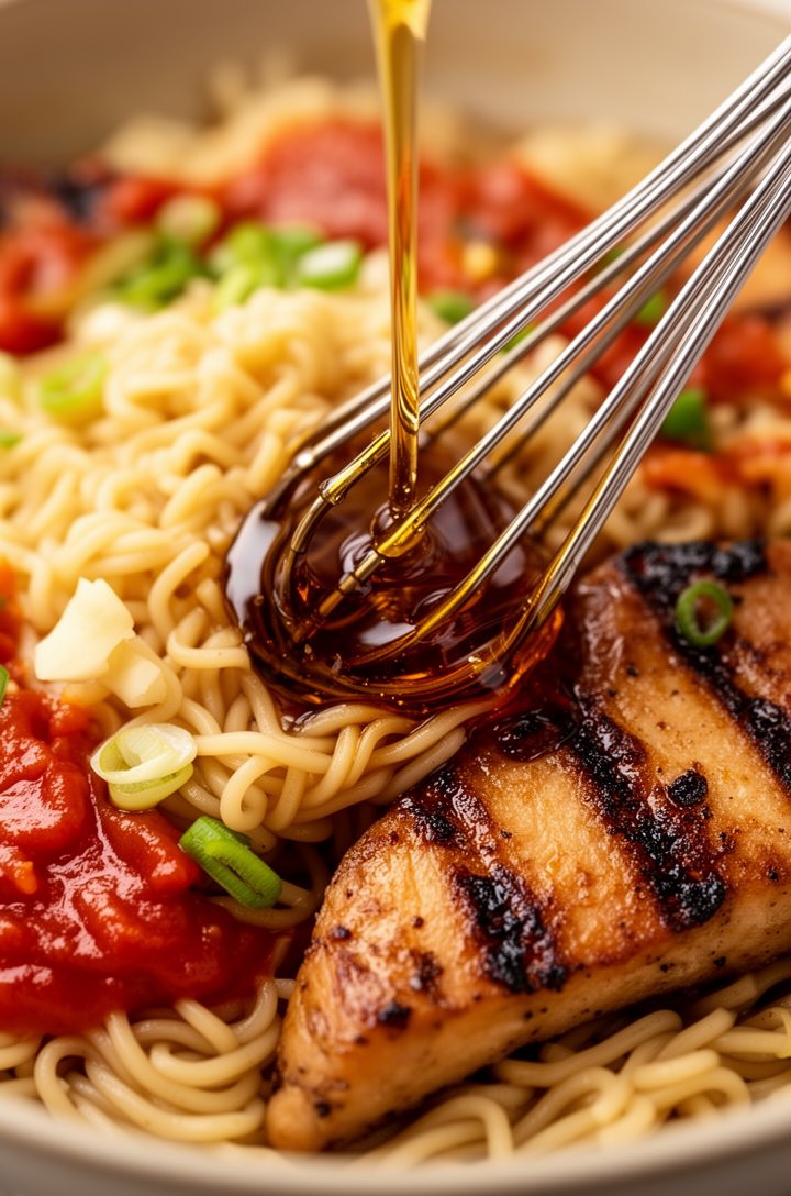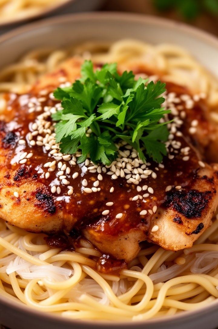 Add 1 tablespoon grated fresh ginger and 1 teaspoon sesame oil to the sauce. Garnish with extra sesame seeds and sliced scallions.