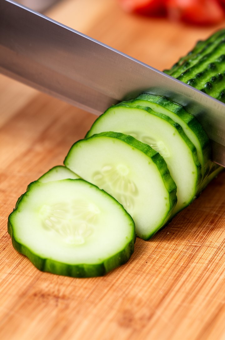 - English cucumbers work best because they have thin skin and tiny seeds, so no peeling or seeding needed. If using regular cucumbers, peel them and scoop out the watery seeds first.