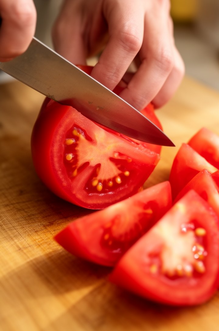 - Use a knife to mince the garlic instead of a press — it gives a gentler, more even flavor that won't overpower the tomatoes.