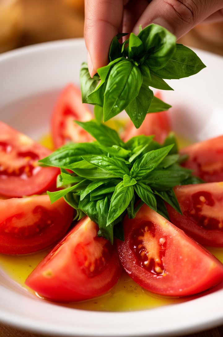 The key is serving this immediately after tossing. The basil stays bright, the tomatoes hold their shape, and every bite has that perfect balance of sweet, tangy, and savory. Don't skip the salt — it pulls the juices out and transforms the whole dish.